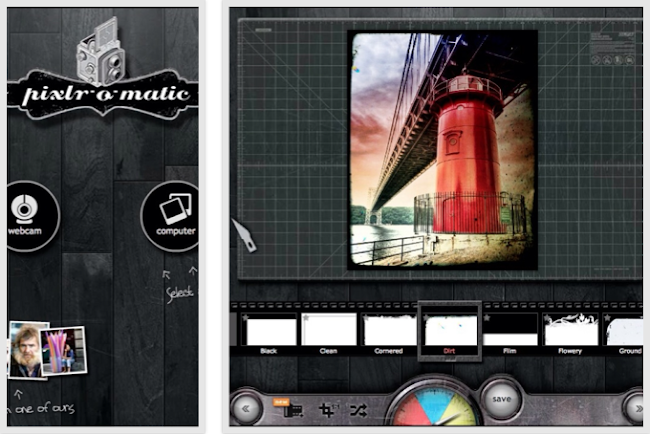 Así mismo, desde la página principal www.pixlr.com, encontrará otro producto que permitirá aplicar efectos sorprendentes a las imágenes. Se trata de pixlr-o-matic. Con este producto en sólo tres pasos, agrega efectos, texturas y marcos a la imagen que desee, ya sea ésta, cargada desde el computador o generada desde la cámara web.